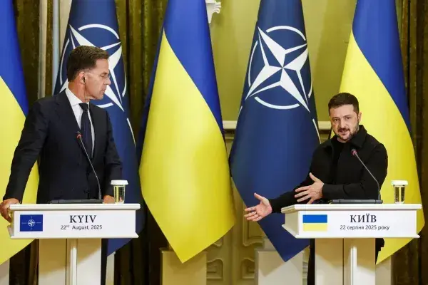 ودعت الإدارة العسكرية في كييف السكان للتوجه إلى الملاجئ بسبب خطر إطلاق صواريخ باليستية روسية، بعد قليل على مؤتمر صحفي عقده روته مع الرئيس الأوكراني فولوديمير زيلينسكي.