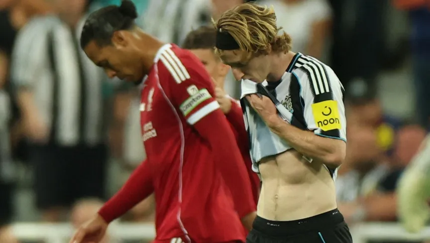 وحصل أنتوني غوردون على بطاقة حمراء مباشرة في الدقيقة الأخيرة من الشوط الأول بعد رجوع الحكم إلى تقنية الـ"فار"، وأكمل نيوكاسل المباراة بـ10 لاعبين، وخسر (3-2) بهدف في الدقيقة 90+10 سجله لاعب ليفربول الواعد ريو نغوهوما.