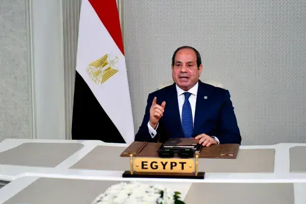 وقال الرئيس المصري: «إن التحديات الاقتصادية التى يشهدها عالمنا اليوم، لا تنفصل عن التوترات الجيوسياسية المتفاقمة .. إذ تشهد منطقة الشرق الأوسط أزمات متلاحقة، ألقت بظلالها الثقيلة، على السلم والاستقرار الدوليين، وعرقلت مسارات التنمية المستدامة.