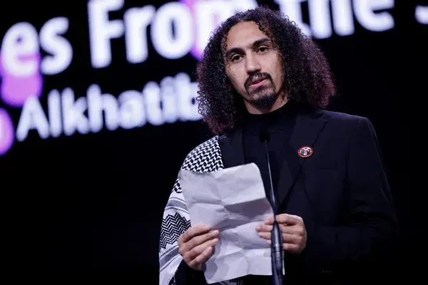 استغل المخرج السوري الفلسطيني عبدالله الخطيب كلمة الشكر التي ألقاها بمناسبة تلقيه جائزة في حفل توزيع جوائز مهرجان برلين السينمائي (برليناله) لإدانة سياسة الحكومة الألمانية إزاء الحرب العدوانية على قطاع غزة.
