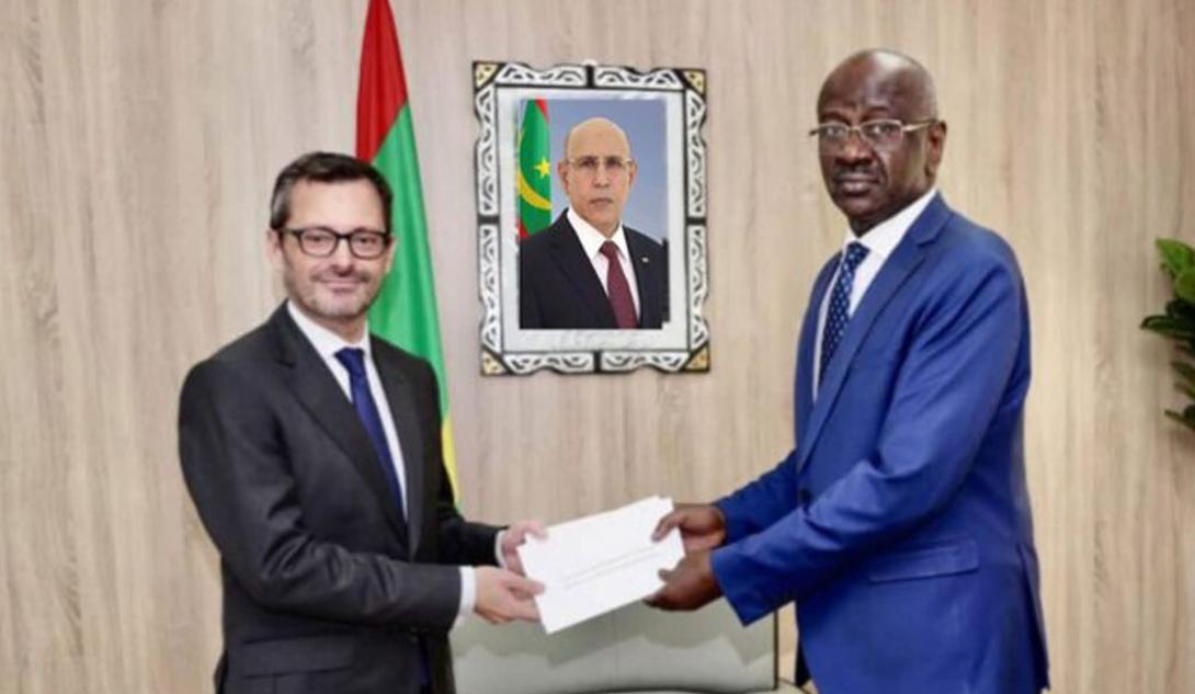 تسلم وزير الخارجية، محمد سالم ولد مرزوك، اليوم بنواكشوط، نسخة من أوراق اعتماد السفير الفرنسي الجديد لدى موريتانيا، إيمانويل بيسنييه.
