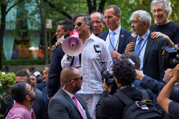 ودعا بيترو، في كلمة ألقاها أمام حشد من المتظاهرين المؤيدين للفلسطينيين أمام مقر الأمم المتحدة في مانهاتن، إلى تشكيل قوة مسلحة عالمية أولويتها القصوى هي تحرير الفلسطينيين، وحث الجنود الأميركيين على «عدم توجيه أسلحتهم إلى الناس»، مضيفا: «لا تمتثلوا لأوامر ترمب، امتثلوا لأوامر الإنسانية».