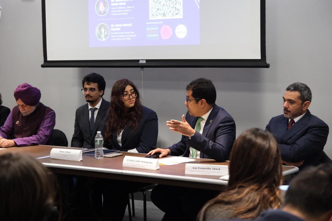 قدم المستشار الأول بالبعثة الموريتانية في نيويورك الحاج ولد لحبيب، محاضرة أمام طلاب جامعة نيويورك (NYU) حول آفاق الأمن والسلم في الشرق الأوسط، وذلك ضمن جلسة النقاش التي نظمتها جمعية العلاقات الدولية بكلية الدراسات المهنية بجامعة نيويورك.