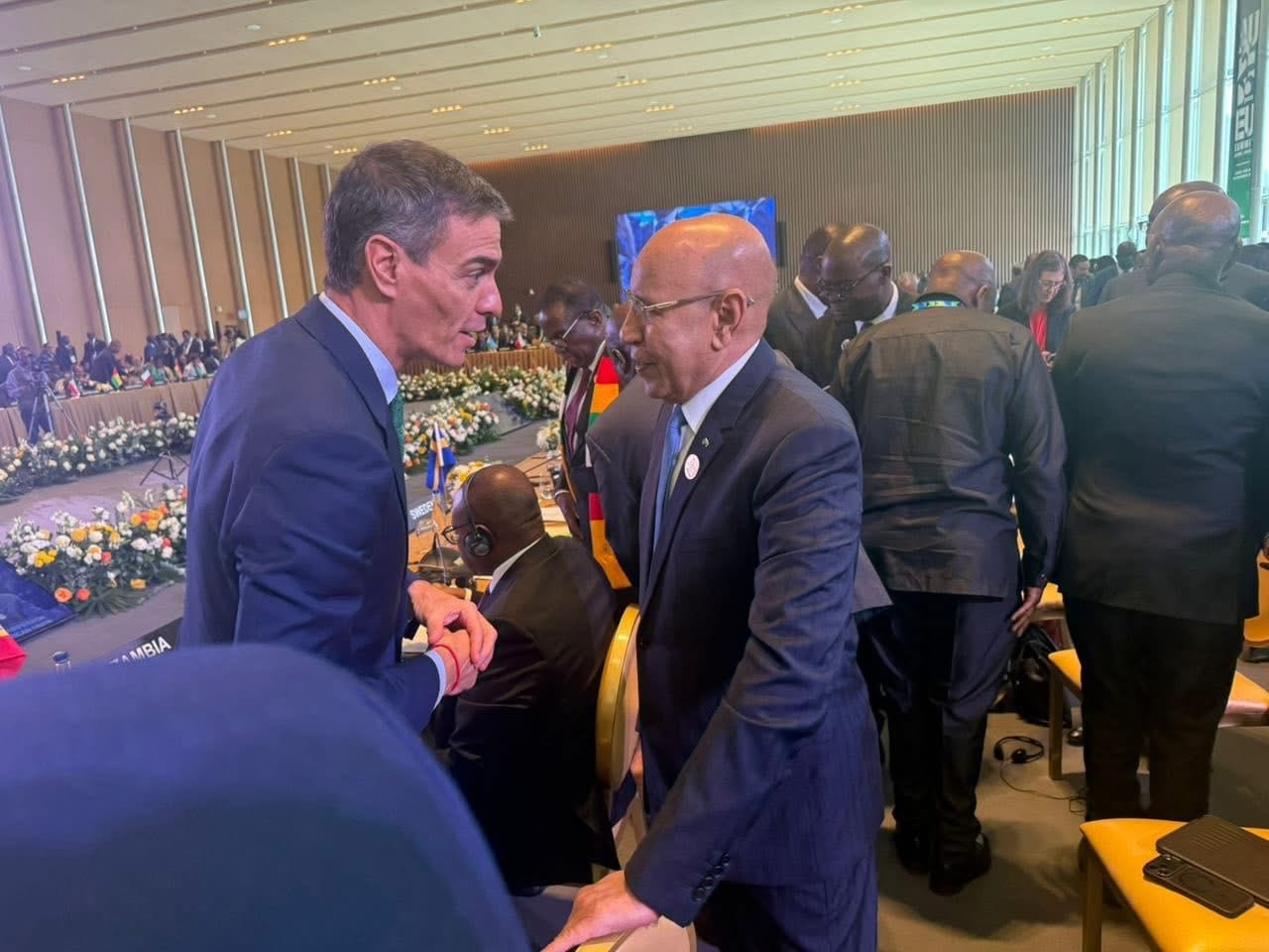 وقد التقى الرئيس غزواني كلا من رئيس الحكومة الإسبانية بيدرو سانشيز، والرئيس الغابوني، بريس كلوتير أوليغي نغيما، حيث تناول اللقاءان سبل تعزيز التعاون بين البلدين والقضايا الإقليمية ذات الاهتمام المشترك.