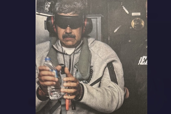 ثم نشر ترمب أول صورة لنيكولاس مادورو مكبّل اليدين ومعصوب العينين، وعلى أذنيه سماعة واقية من الضوضاء.