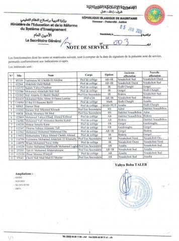 Jan 06 / التعليقات وزارة التربية تعلن لوائح التبادل بين المدرسين أعلنت وزارة التربية وإصلاح نظام التعليم لوائح التبادل بين المدرسين في التعليم الأساسي والثانوي. وشملت اللوائح عشرات المدرسين، الذين استفادوا من حقهم في التحويل عن طريق التبادل بين مختلف المناطق، بمافيها نواكشوط والداخل. ثلاثاء, 2026/01/06 - 13:04