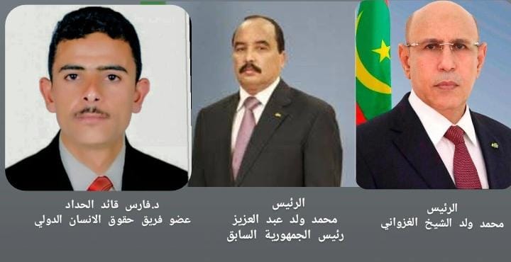 بعث الدكتور فارس قائد الحداد -عضو فريق حقوق الإنسان الدولي (منظمة العفو الدولية) صحافي وحقوقي يمني برقية عزاء ومواساة للرئيس محمد ولد الشيخ الغزواني رئيس الجمهورية و محمد ولد عبد العزيز الرئيس السابق وقد حصل "الجديد نيوز" على نسخة منها ، هذا نصها :