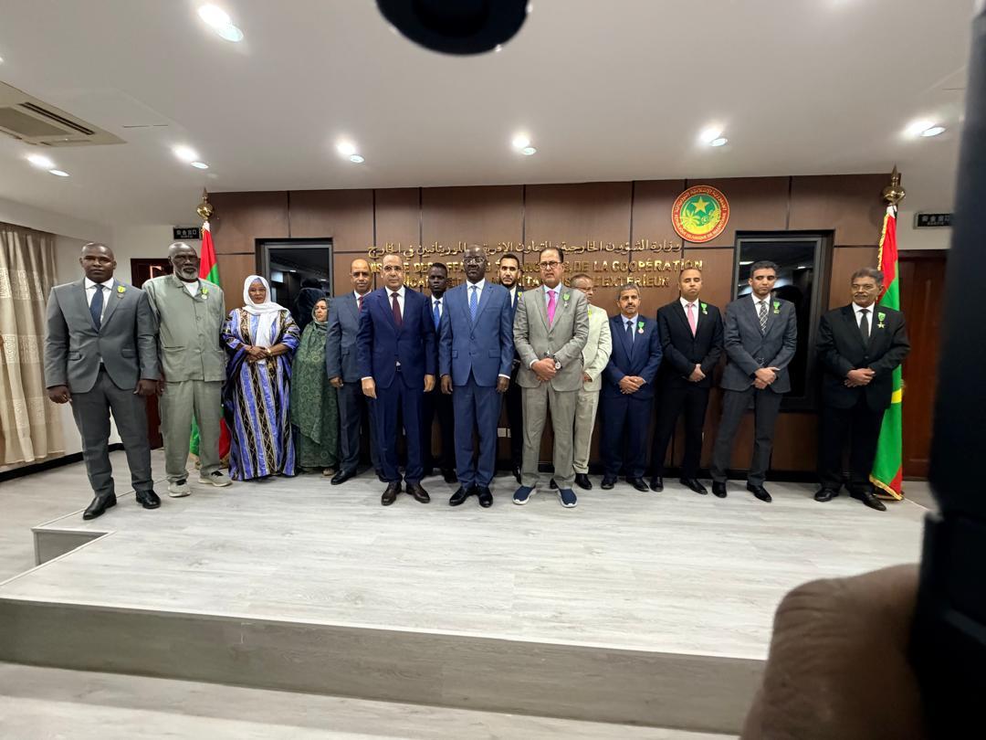 وشح وزير الشؤون الخارجية والتعاون الإفريقي والموريتانيين في الخارج محمد سالم ولد مرزوك، اليوم الجمعة بمقر الوزارة في نواكشوط عددا من مسؤولي وأطر وعمال القطاع، وذلك في إطار الفعاليات المخلدة للذكرى الخامسة والستين لعيد الاستقلال الوطني.