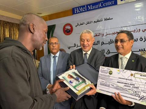 نظمت سلطة تنظيم النقل الطرقي، اليوم في فندق "موري سانتر" بنواكشوط، حفلاً لتكريم الفائزين في نسختها الخامسة من جائزتها السنوية لعام 2025، وذلك في إطار جهودها الرامية إلى تعزيز السلامة الطرقية والحد من حوادث السير.