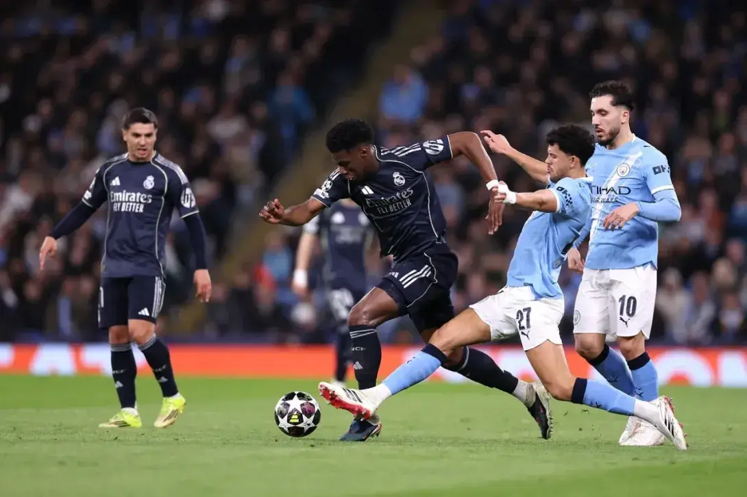 وفي مباراة الإياب سجل النجم البرازيلي فينيسيوس هدف الفريق الملكي من ركلة جزاء 22 حصل عليها بعد إبعاد كابتن سيتي البرتغالي بيرناردو سيلفا للكرة باليد داخل منطقة الجزاء وطرد على إثرها.